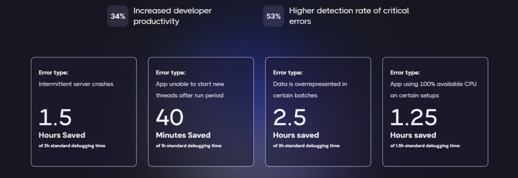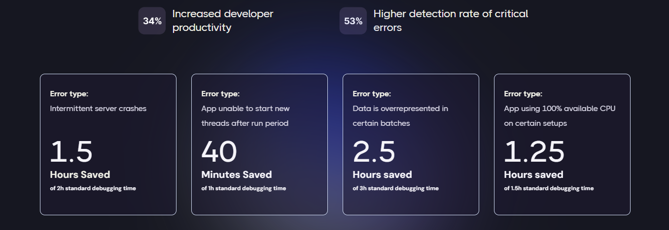 This is just a simple demonstration of the capability of GenAI for error detection, as more advanced use cases can also be tackled with more varied, specific tools. For example, Metabob is a coding-assistant tool that focuses on detecting complex logical problems and vulnerabilities, as well as general opportunities for code-quality improvements. It even explains its detection in natural language and generates code recommendations to implement relevant solutions. The screenshot below demonstrates Metabob in action. The capability of error detection and mitigation of GenAI models is a vital improvement in developer productivity as it helps them reduce many hours spent on fixing complicated bugs and focus more on delivering quality solutions.