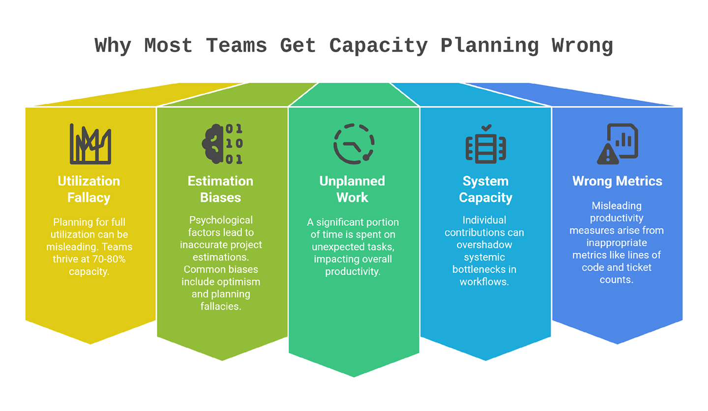 Despite best intentions, many engineering organizations struggle with capacity planning. Here are the most common pitfalls: